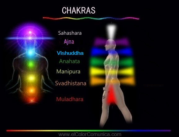 Aby sme dokázali porozumieť čakrám, musíme porozumieť základom lámania svetla. Ak svetlo prechádza cez sklenený hranol, láme sa a z hranolu vychádza 7 farieb: červená, oranžová, žltá, zelená, modrá, indigová, fialová. Sú to farby dúhy.